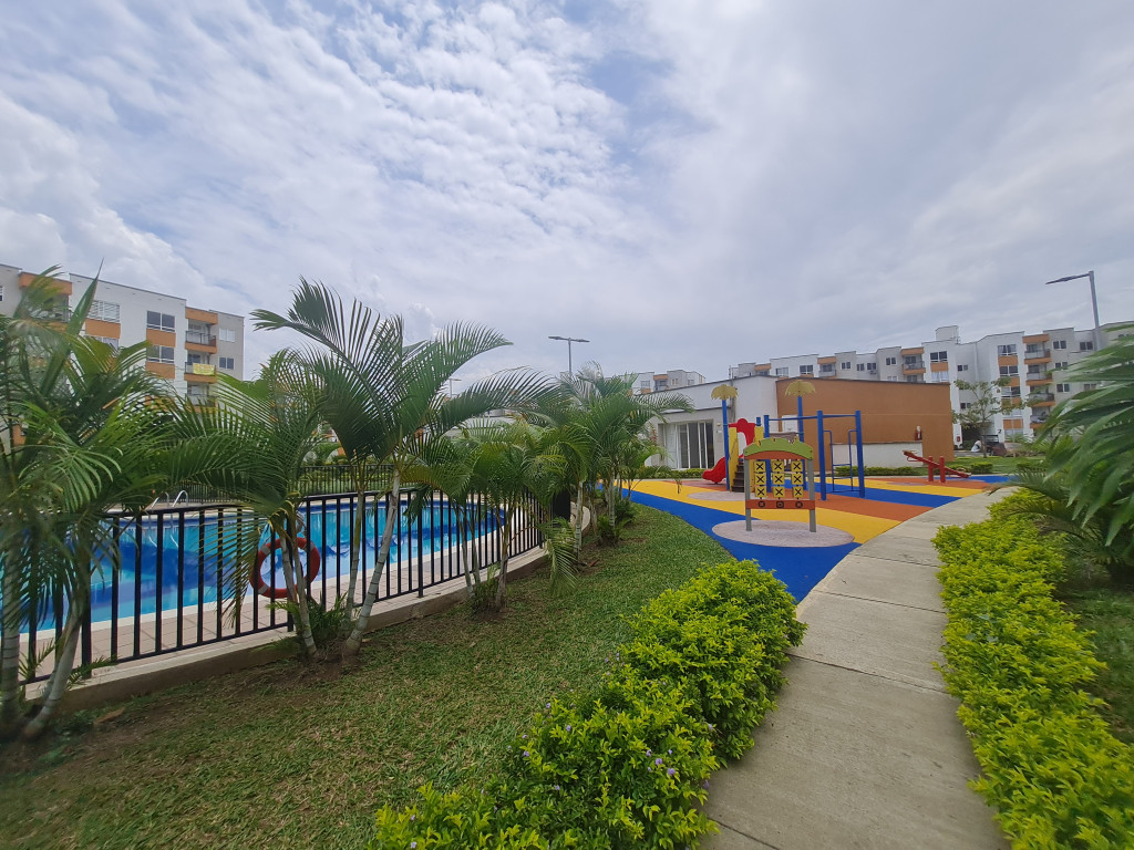 CR CAMINOS DE PANGOLLA – JAMUNDI: Excelentes acabados y muy bien equipado para la comodidad de los residentes, iluminación natural, apartamento ubicado en 4 piso con asensor, consta de: 2 habitaciones, principal con baño, closet de habitaciones, aire acondicionado en principal, 2 baños completos, sala TV con mueble de madera moderno, sala comedor, cocina integral y con barra, balcón vista interna, cuenta con blackout en todas las ventanas, zona de oficios independiente con calentador a Gas, parqueadero descubierto #511, estrato 4, Unidad: Vigilancia, porteria, zonas de juegos con 2 parques infantiles, piscina adultos y niños, zona BBQ, salon social cerrado, parqueadero visitantes, salon de juegos, doble porteria y cancha multiple, cerca a supermercados y estación de gasolina, unidad sobre la AV. Sanchamate, fácil acceso.